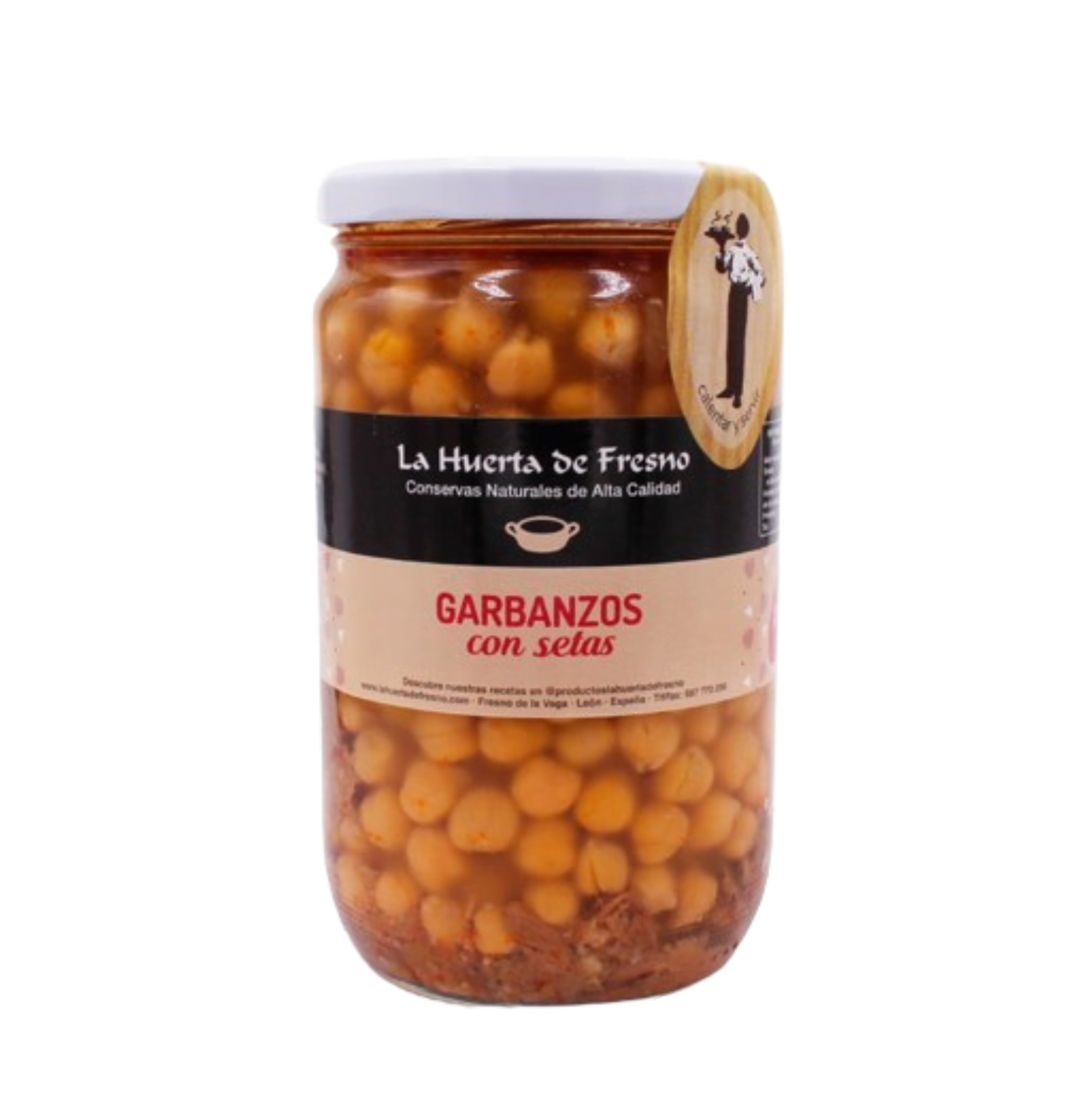 Un completo y delicioso plato preparado de garbanzos con setas listo para comer. Se utiliza una variedad de garbanzo cultivada tradicionalmente en la comarca leonesa de la Maragatería. Es un garbanzo de tamaño medio, mantecoso, con la piel muy fina y con mucho sabor, procedentes de tierras de secano. Nuestros platos preparados están ideados para calentar y comer, o para que el consumidor le añada los ingredientes que quiera, para que, con un mismo plato, se puedan hacer diferentes versiones.