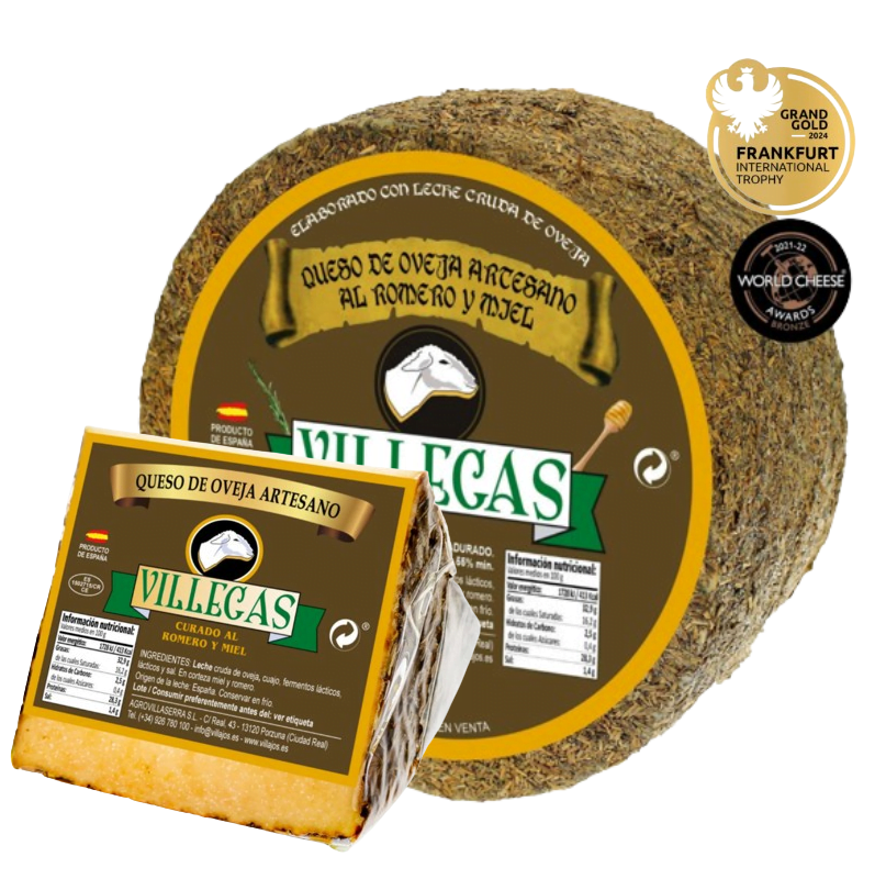 Queso curado de pasta prensada elaborado con leche cruda de oveja, hojas de romero y miel.