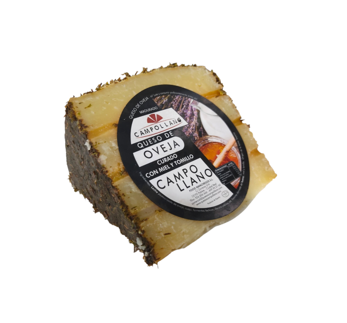 Queso curado artesano elaborado con leche pasteurizada de oveja, aromatizado y recubierto con tomillo y miel.